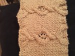 The scarf thing is done. Thank heaven. My hands hurt. But I’ve definitely mastered cables.